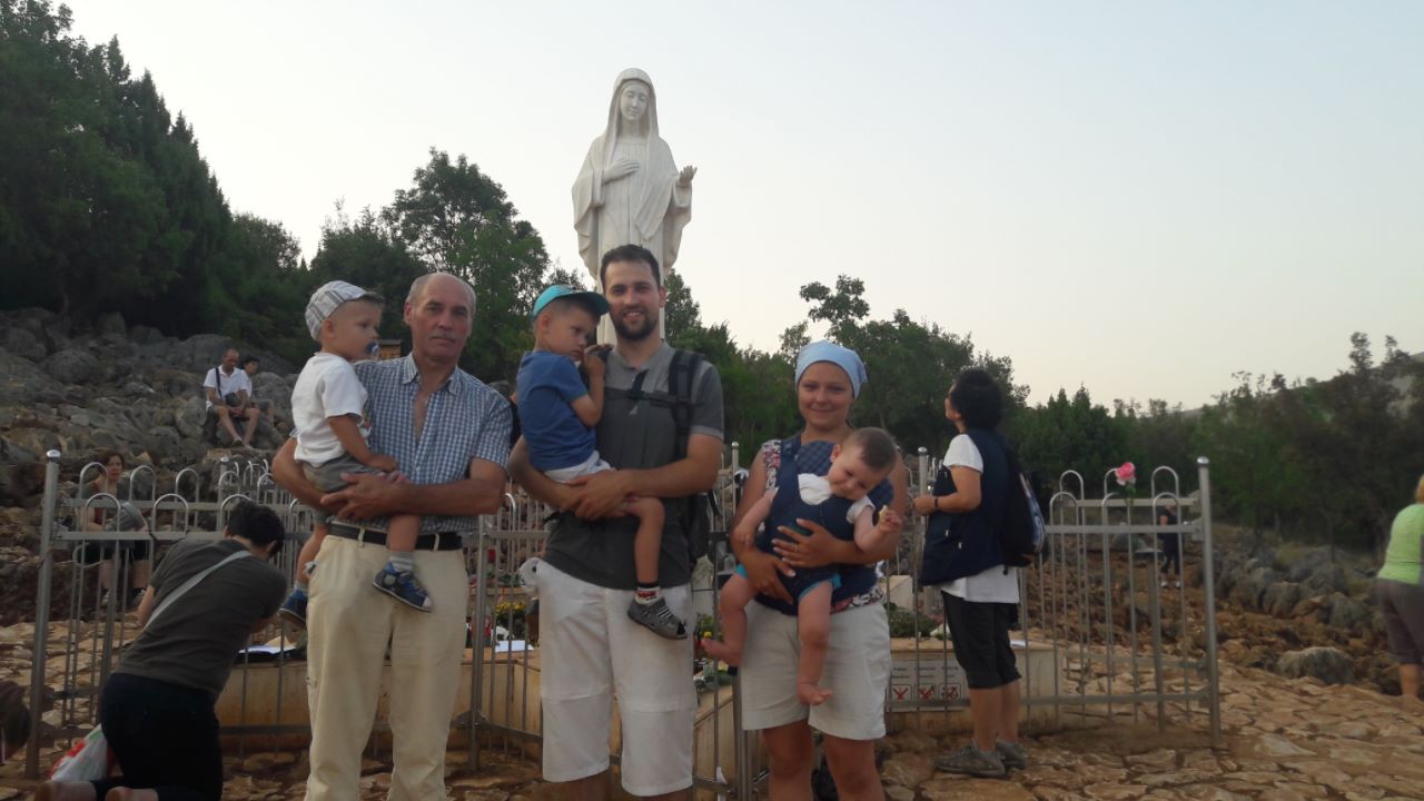 Наш старший син Адріан, якому п’ять років, був у Меджуґор’ї вже п’ять разів. І минулого літа він дуже перейнявся стаціями Хресної дороги, які розташовані навколо статуї воскреслого Ісуса, він водив туди всіх по черзі, запам’ятав назви всіх стацій і завжди молився біля стації, де Ісус помирає. Варто також зазначити, що його улюбленою молитвою є коронка до Божого Милосердя. У Меджуґор’ї Господь через заступництво Богородиці в особливий спосіб доторкається до наших сердець, які відкриті на Його любов, навіть до найменших.