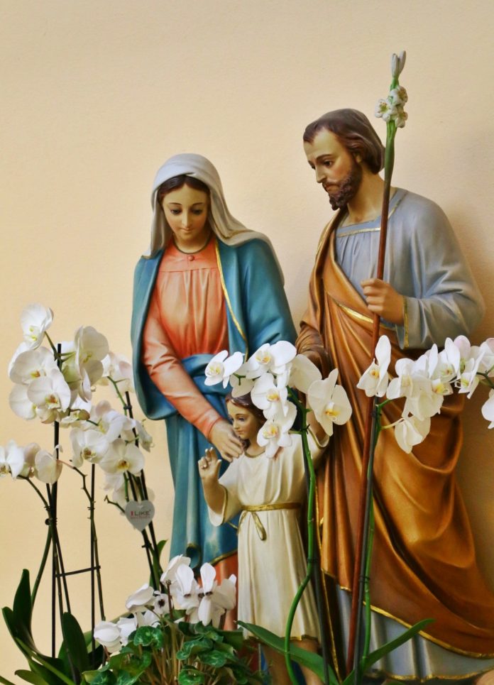 - на столі або в іншому, гідному й приготованому місці (сімейний вівтар), поставте хрест, фігуру або образ із зображенням Ісуса Христа, Матері Божої й св.Йосифа;