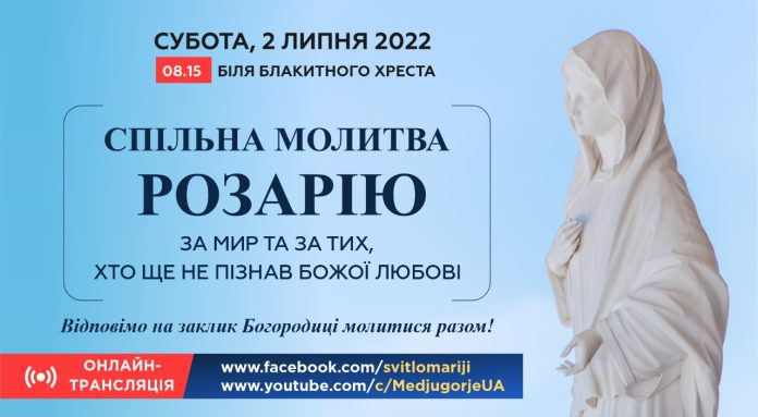В суботу, 2 липня запрошуємо вас до спільної МОЛИТВИ РОЗАРІЮ ЗА МИР ТА ЗА ТИХ, ХТО ЩЕ НЕ ПІЗНАВ БОЖОЇ ЛЮБОВІ.