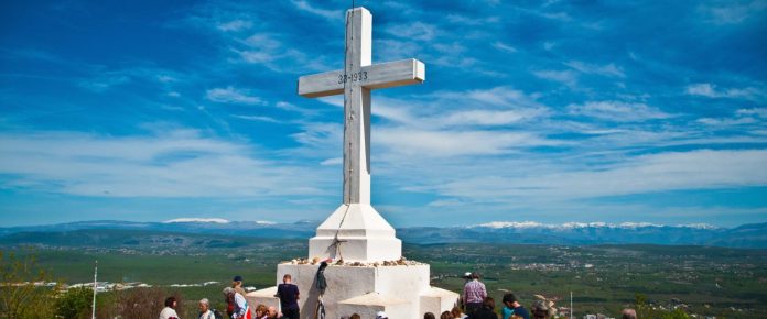 1933 року настоятель меджуґорської парафії Бернардин Смолян та парафіяни встановили на горі Кріжевац залізобетонний хрест висотою 8.56 м. На ньому вони викарбували слова: